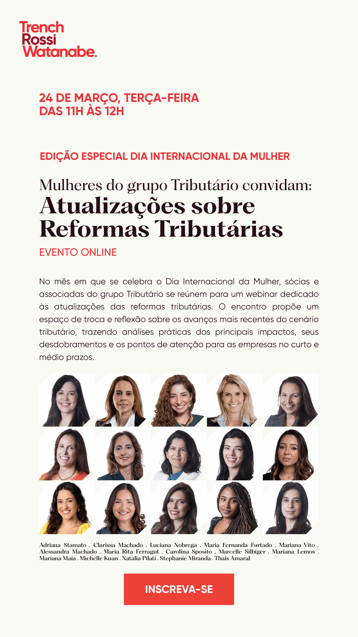 Trench Rossi convida para o webinar “Edição Especial Dia Internacional da Mulher – Atualizações sobre Reformas Tributárias”